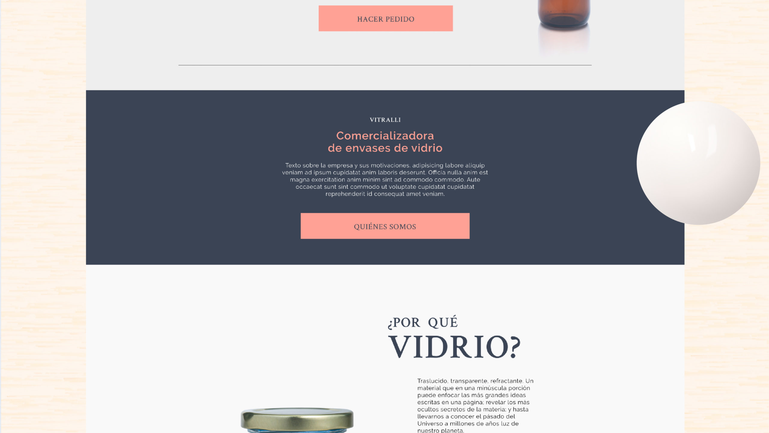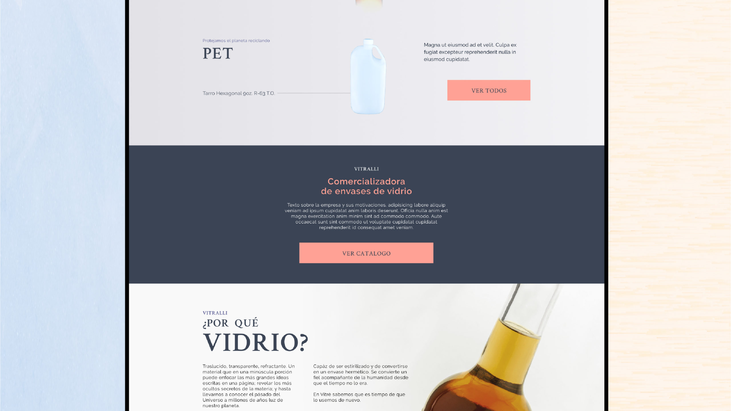 Una importante comercializadora de envases de vidrio y plástico en el centro del país, para la cual hemos desarrollado una página web a medida siguiente un brief minuciosamente e implementando una dirección de arte única en www.vitralli.com.mx
